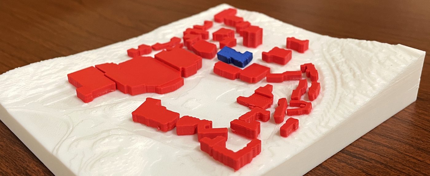 The DSG recently acquired a 3D printer, which is available for use in scholarship-oriented projects, such as printing historical artifacts, creating biological models, and producing 3D visualizations for poster sessions. This semester, an undergraduate math class is using it to print shapes extruded from a 2D profile generated with a mathematical function. These shapes will then be 3D printed to test the buoyancy characteristics of each profile. |