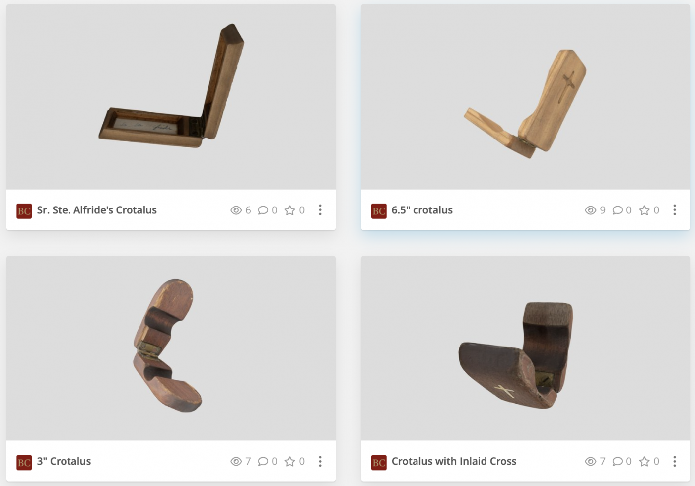 We have partnered with the Catholic Research Archives to produce 3D models of objects from their rapidly growing collections. The models are created through photogrammetry and structured light scanning with assistance from graduate student Natalie Hill and undergraduate Caleb Lee, who have learned to use these technologies to produce highly detailed scans of complex objects. Some early examples include equipment for making and maintaining habits, a tabernacle once installed in the White House, and a collection of personal crotali (clappers used in place of bells during Holy Week). These digital models will be integrated into our soon-to-be-launched online 3D collections repository and pedagogical modules that will introduce a broad student audience to life in the Catholic Church. For now, a selection of these models can be viewed on Sketchfab. |